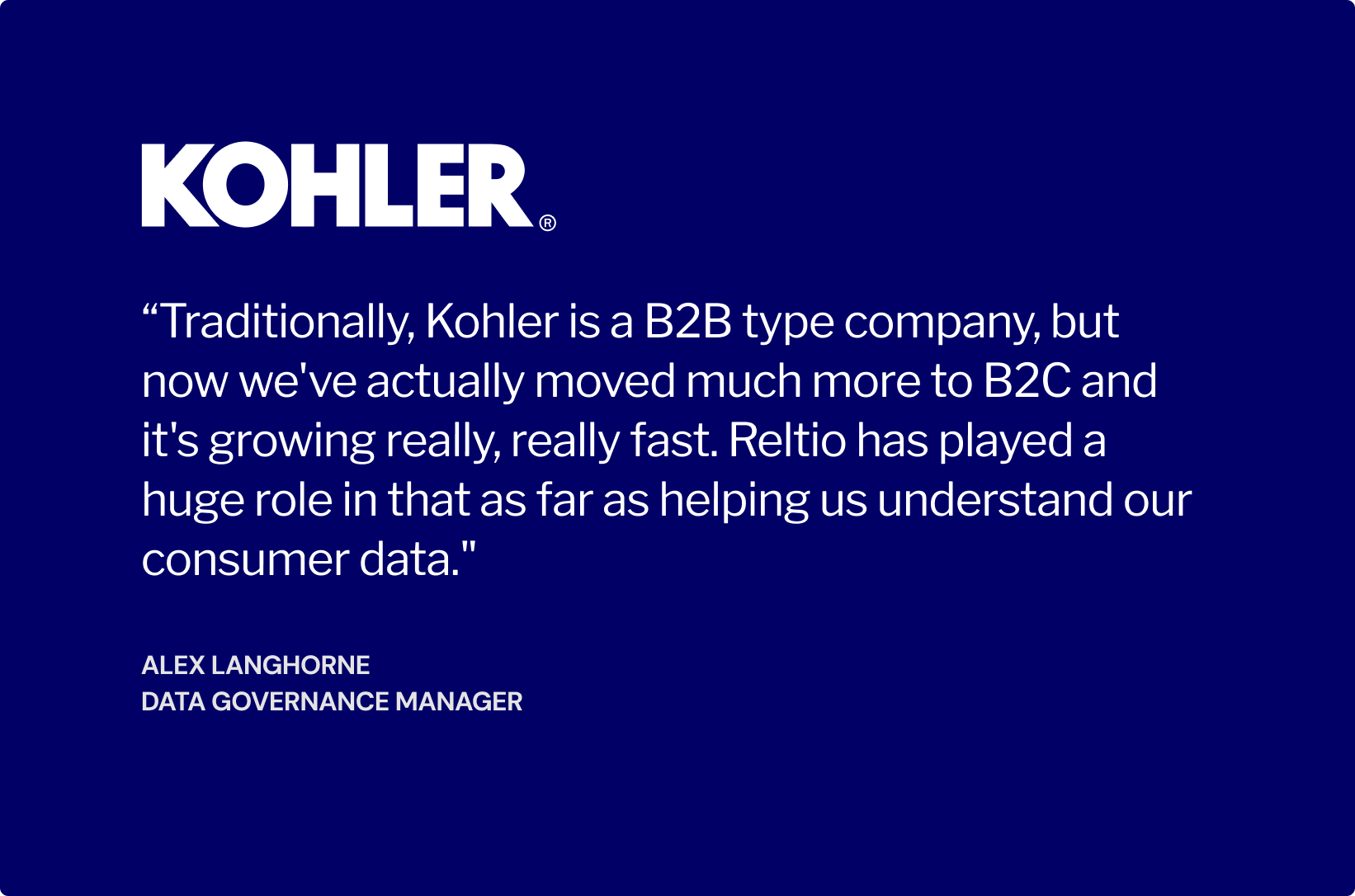 “Traditionally, Kohler is a B2B type company, but now we’ve actually moved much more to B2C and it’s growing really, really fast. Reltio has played a huge role in that as far as helping us understand our consumer data.”